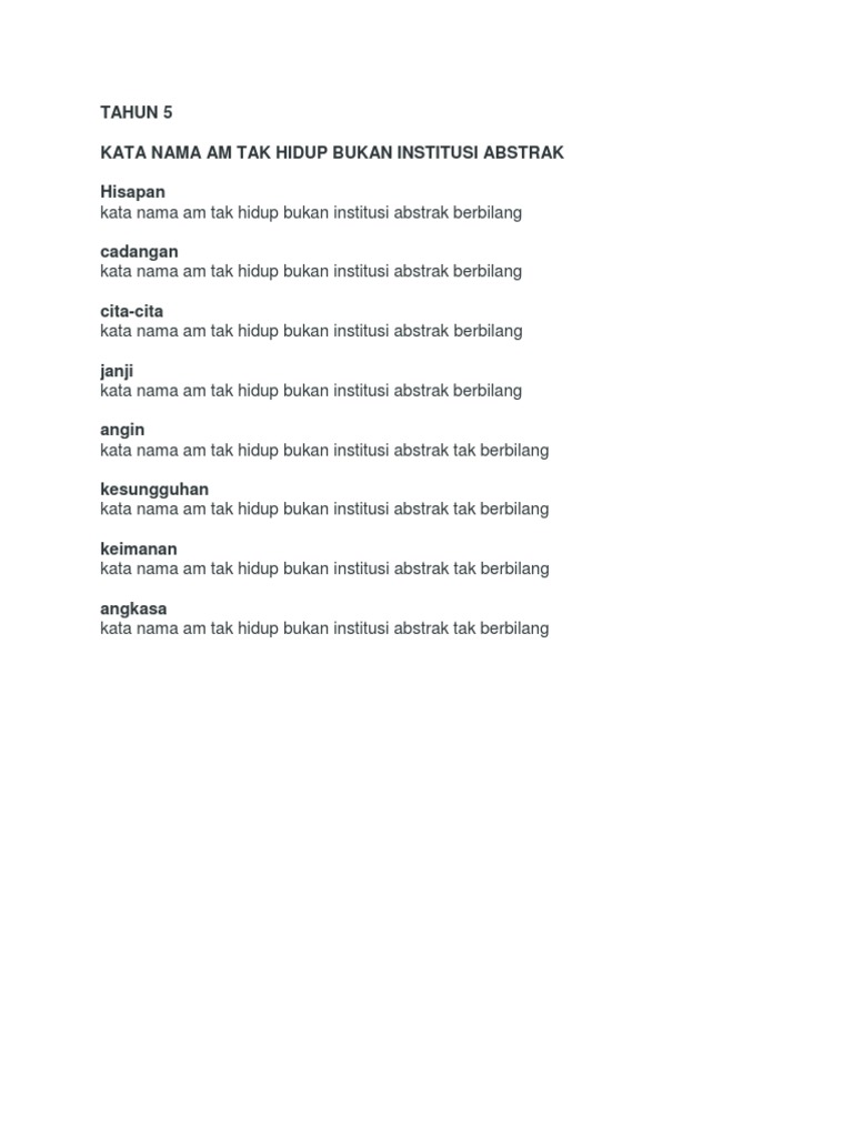 | Lihat Kata Nama Am Tak Hidup Bukan Institusi Abstrak Tahun 5 Pdf |